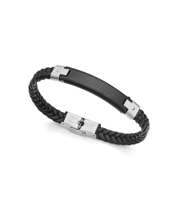 Polsera d´home Viceroy Magnum d´acer Ip negre i cuir negre trenada, llarg 21,5 cm.