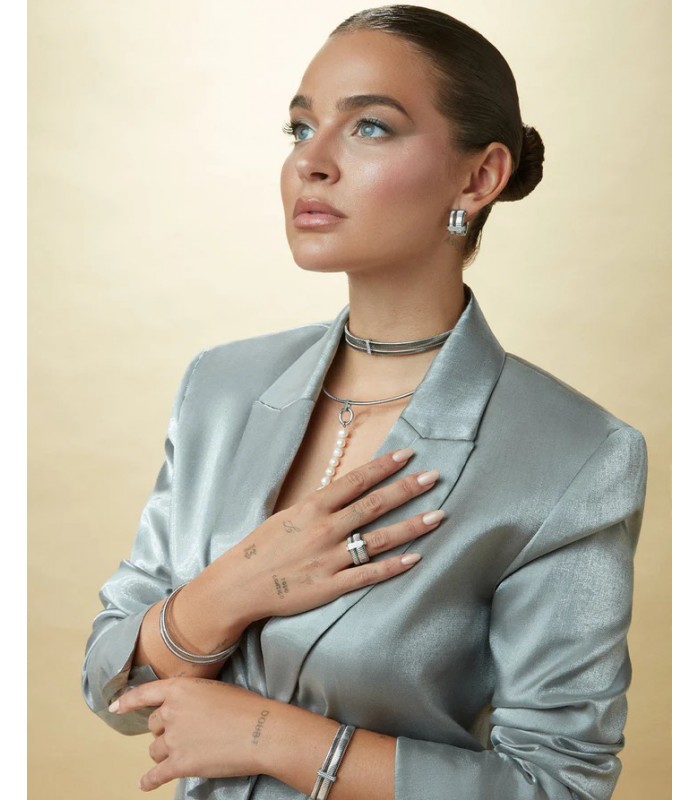 Tipus Peça: ArracadesDetall Peça: Criolla modaMaterial Principal: AcerAltres Materials: CirconitaAcabat: Brillantor / polimentLlarg / Diàmetre: 2 cmColor: Platejat