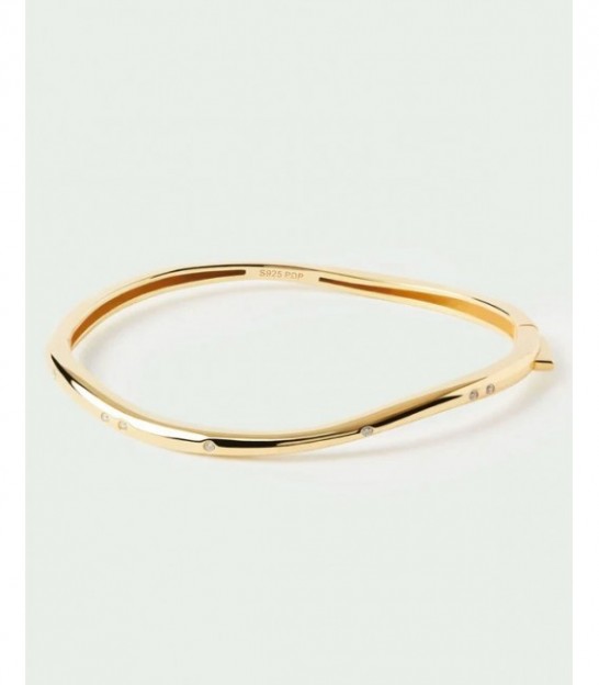 Material: Plata de Ley (100% plata reciclada)Acabado: Baño de Oro 18KPiedra: Circonita blancaGrosor: 3 mmMedidas de la talla S: 4,5 cm x 5.3 cmMedidas de la talla M: 5 x 6 cmCierre: sistema de seguridad de bisagraPeso: 9.11 g (s) 10.1 g (m)
